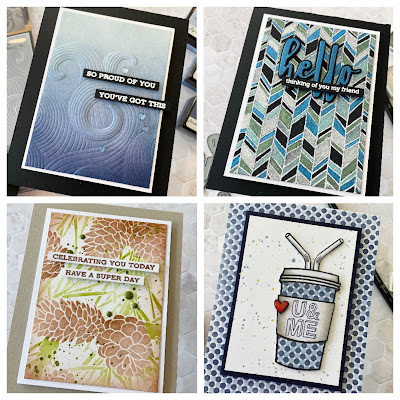 The components I used for inspiration on my projects include Easy Ink Blending (with Amy Lee), Let It Shine (with Carissa Wiley), For The Guys (with Jennifer Rzasa), Creative Watercolor Media (with Jennifer Rzasa, Laura Bassen & Debby Hughes) and Celebration Stencil Techniques (with Laurel Beard).